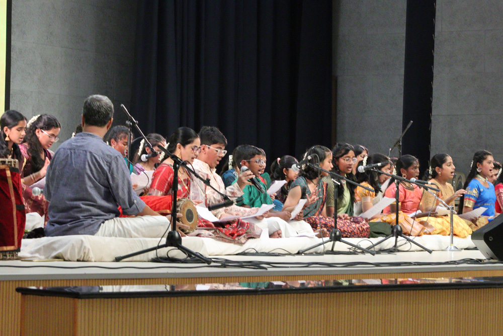 On 9 January 2026, Thyagaraja Aaradhana was celebrated with great devotion and musical fervour. A group of dedicated students presented a soulful rendition of Pancharatna Kriti, ‘Jagadhanandhakaraka’ and Thyagaraja Kriti, ‘Shambho Mahadeva’ and enthralled the audience. The performance reflected the students’ deep reverence for the legendary composer Saint Thyagaraja. Vraja resonated with melodious compositions, filling the atmosphere with devotion and admiration for the timeless contributions of this great musical stalwart.